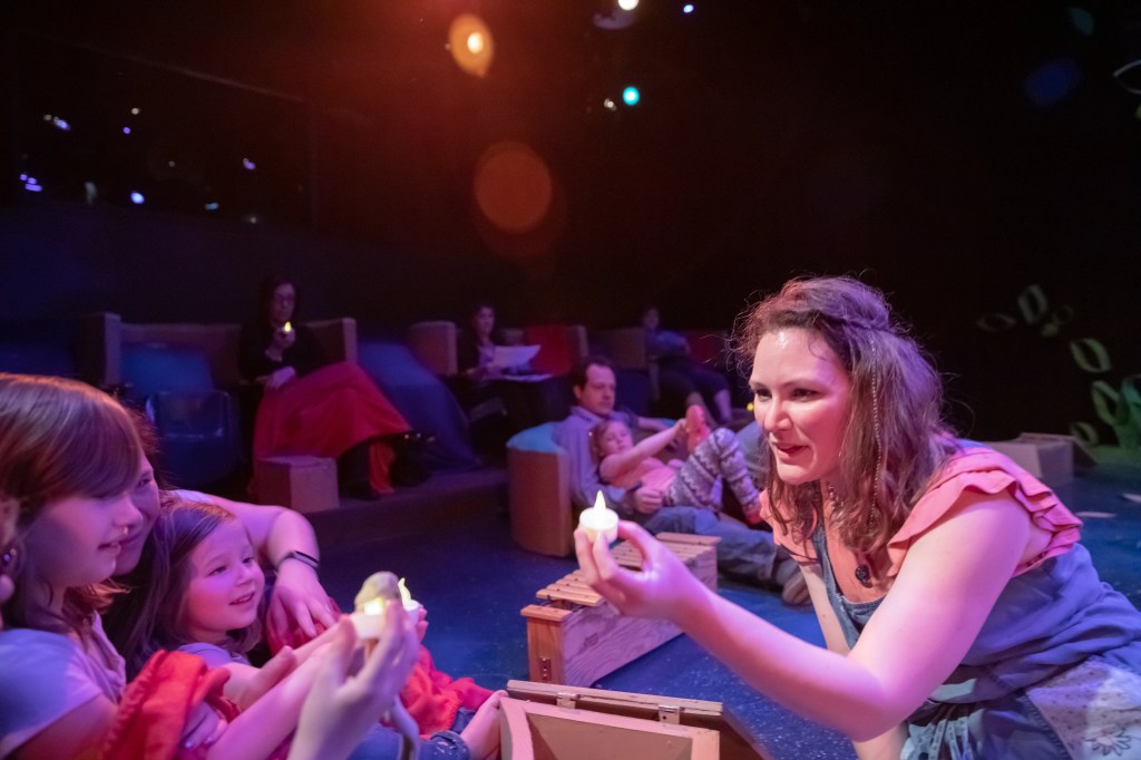 Created by a team of professional artists who are also the mothers of young children,“My Traveling Song” is an original play especially made for children ages 1-5, the young at heart, and the grown-ups who love them. With live music, tactile play and stunning imagery, “My Traveling Song” uplifts relationships between children and their caregivers while taking audience members on a heartfelt journey filled with wonder and joy. In “My Traveling Song” thunderstorms relinquish to cheerful mud puddles and darkness reveals magical firefly constellations in the night sky. Despite a world that can be unpredictable and sometimes sad, “My Traveling Song,” affirms the connections between loved ones, communities and the world around us can help to make us feel safe, loved, and free to imagine a more empathic and playful world.